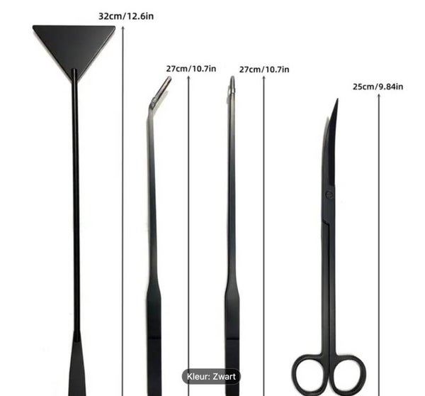 Wil je jouw aquarium eenvoudig onderhouden of aan de slag met aquascaping? Dan is deze stijlvolle en duurzame RVS gereedschapsset onmisbaar. De set bevat vier veelgebruikte tools waarmee je nauwkeurig kunt planten, knippen, schoonmaken én decoreren – en dat allemaal zonder natte handen.