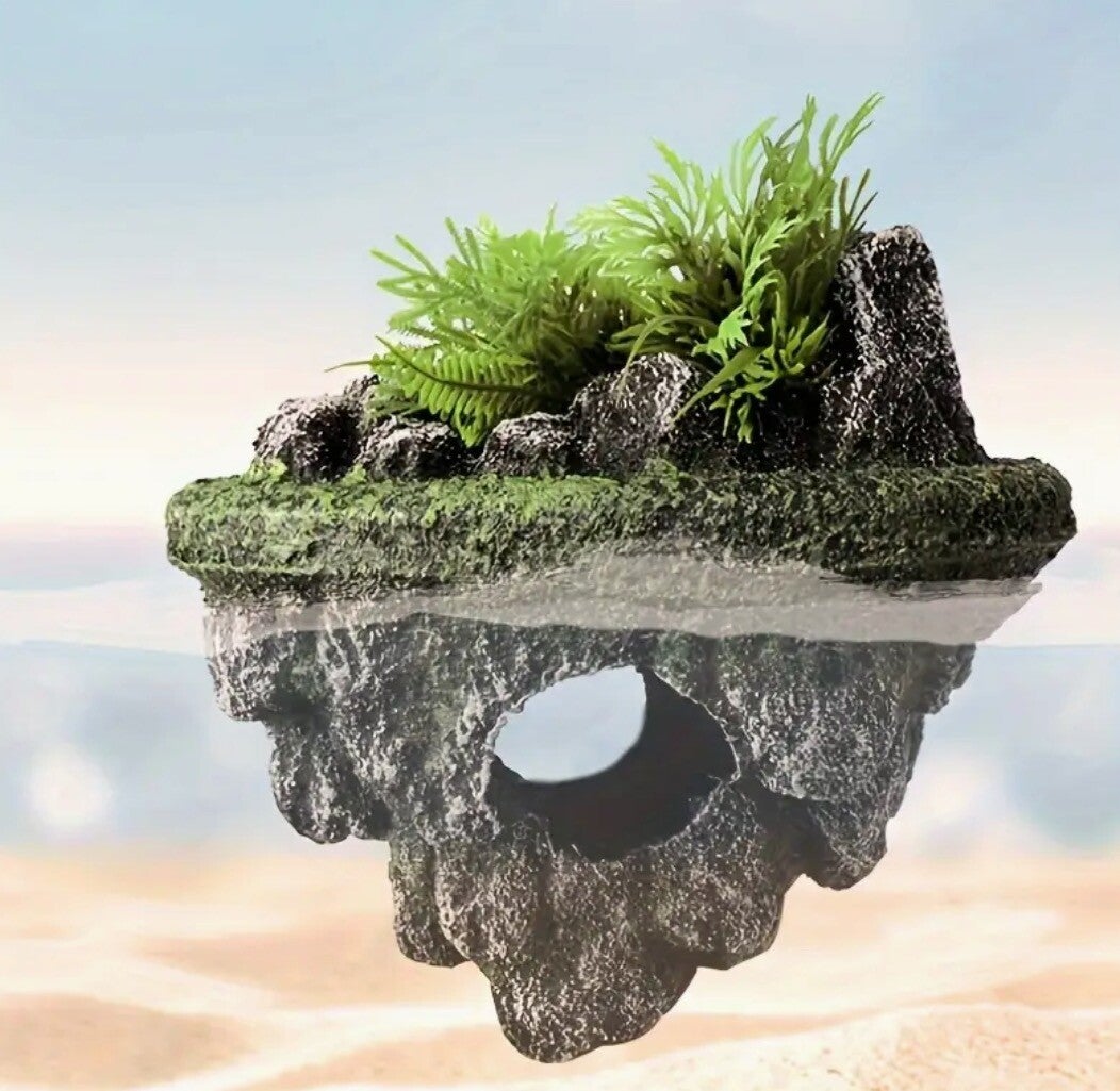 Drijvende aquarium decoratie eiland met schuilplaatsrots