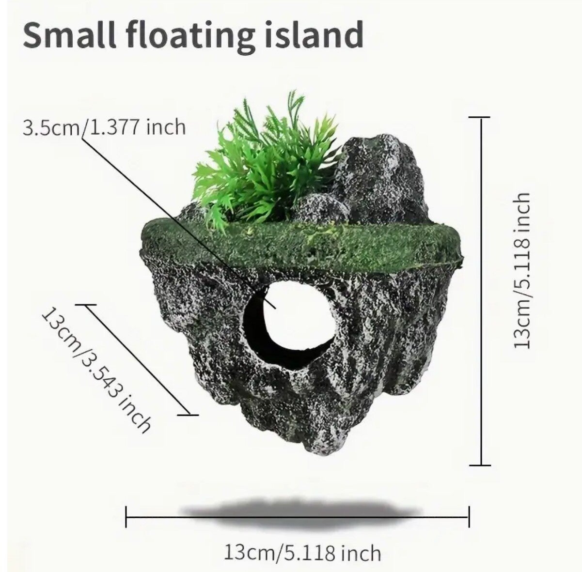 Deze unieke drijvende rotstuin combineert natuurlijke uitstraling met functionaliteit. Gemaakt van aquariumveilige hars, biedt dit ornament niet alleen een decoratief rotseffect, maar ook een fijne schuilplaats voor vissen of garnalen.