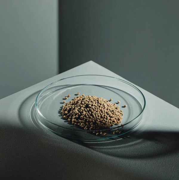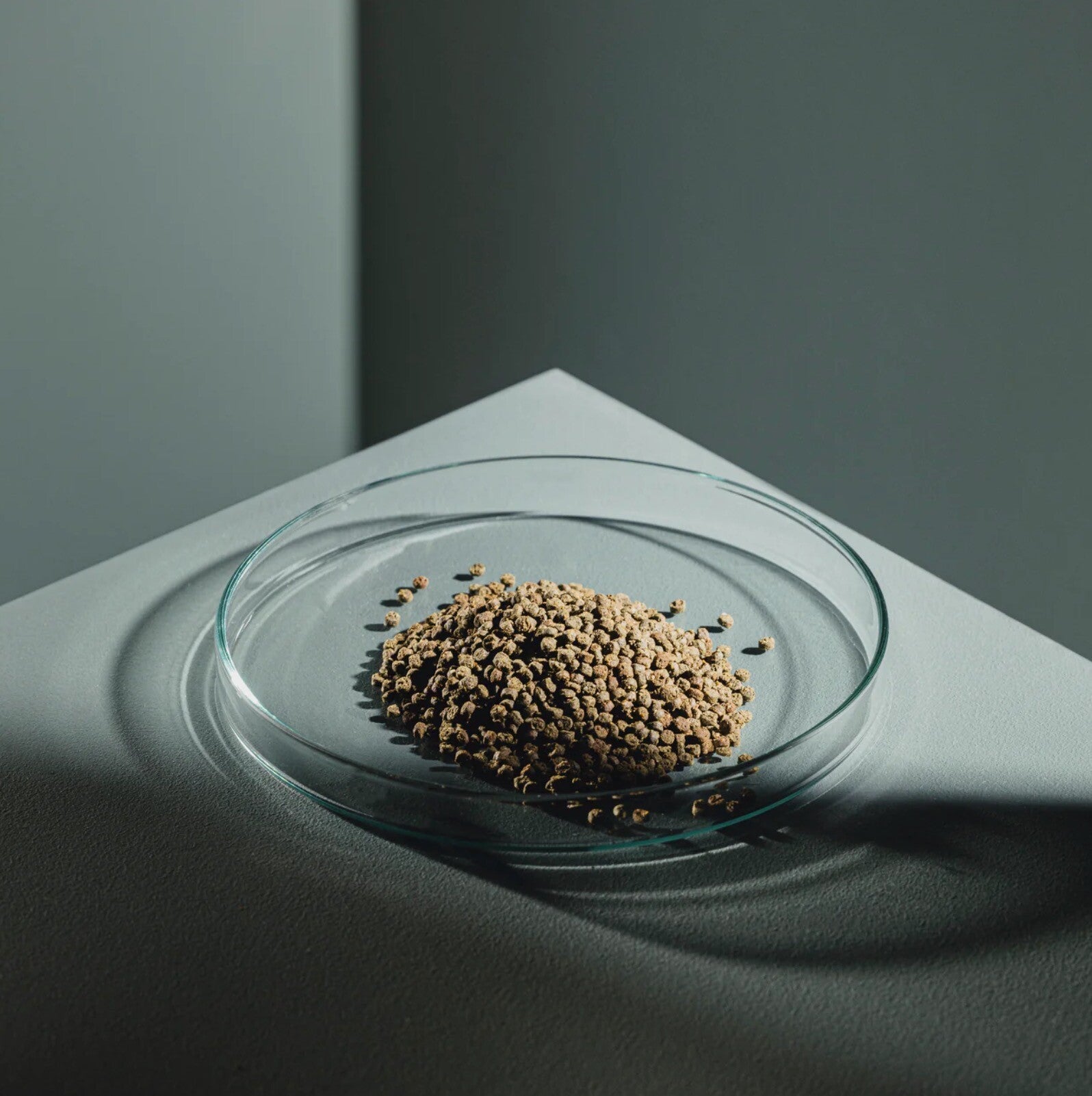 Garnalenmeel, rijst, erwten, insecteneiwit, spirulina, kelp, spinazie, boerenkool, kikkererwten, zalmolie, moringa, kruidenmix, wortel, kruidenolie, pre- en probiotica.