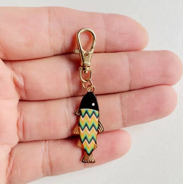 Robuuste en stijlvolle sleutelhanger in de vorm van een vis, gemaakt van duurzame metaallegering. Een perfecte accessoire voor liefhebbers van vissen en waterdieren.