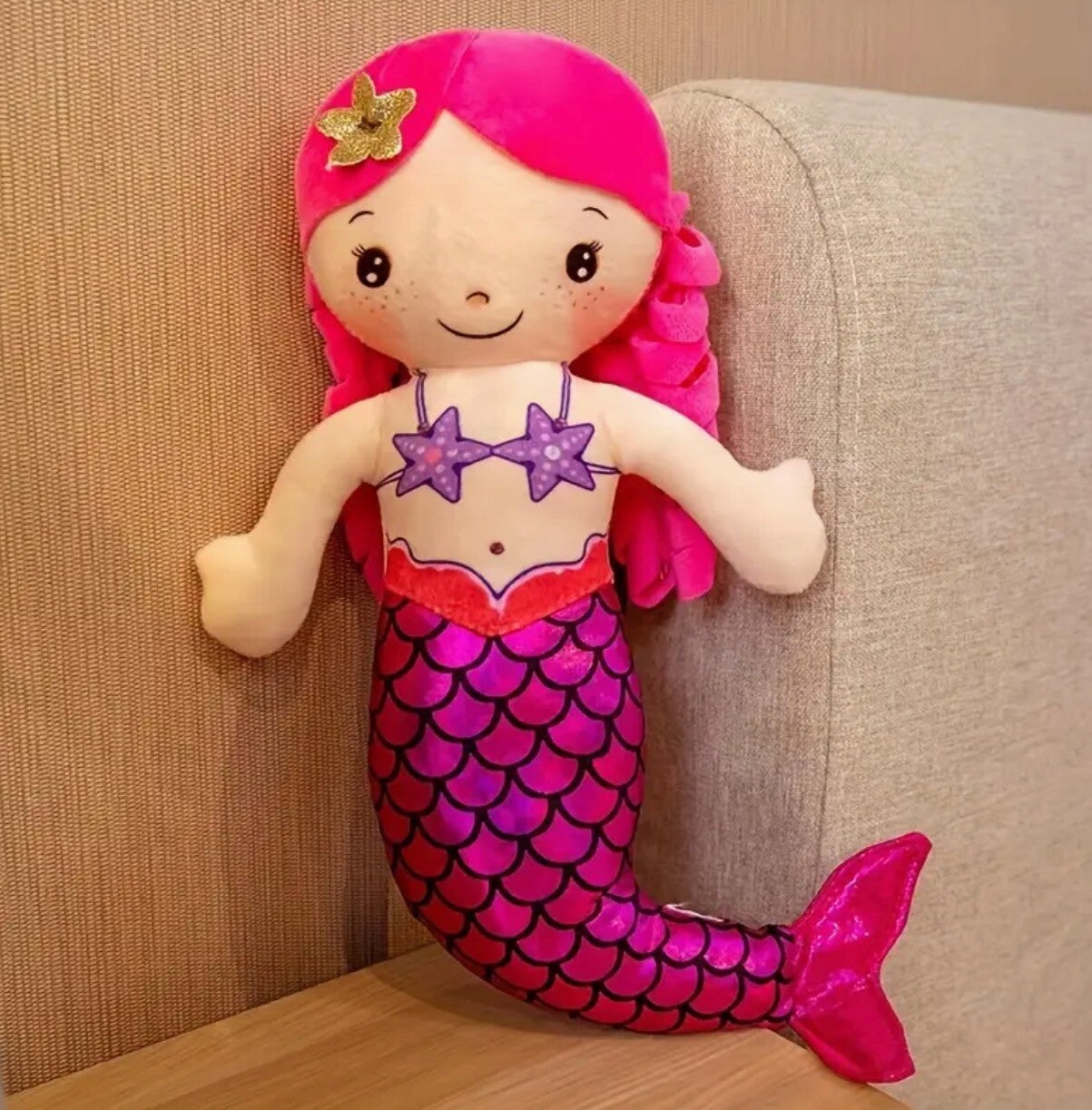 Droom weg met deze zachte, gevulde zeemeermin pop van 30 cm! Perfect om mee te knuffelen, verhalen mee te beleven en mee te spelen. Een magische vriend voor kinderen die houden van sprookjes en avontuur.