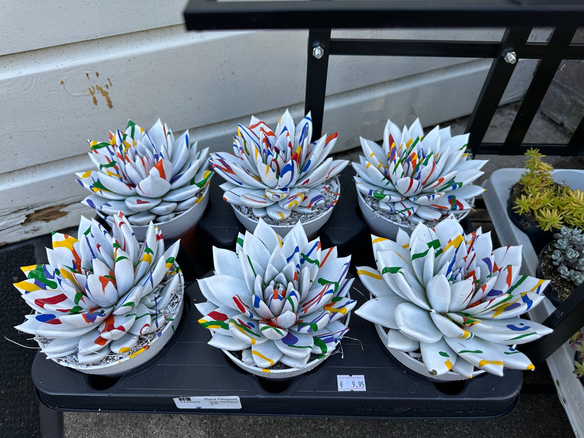 De Echeveria Miranda ‘Coloured Splash’ is een echte eyecatcher binnen het succulent assortiment. Deze variant is voorzien van een opvallende zwarte of witte kleurlaag, wat zorgt voor een modern en artistiek effect. Perfect voor wie een unieke en gedurfde plant zoekt!