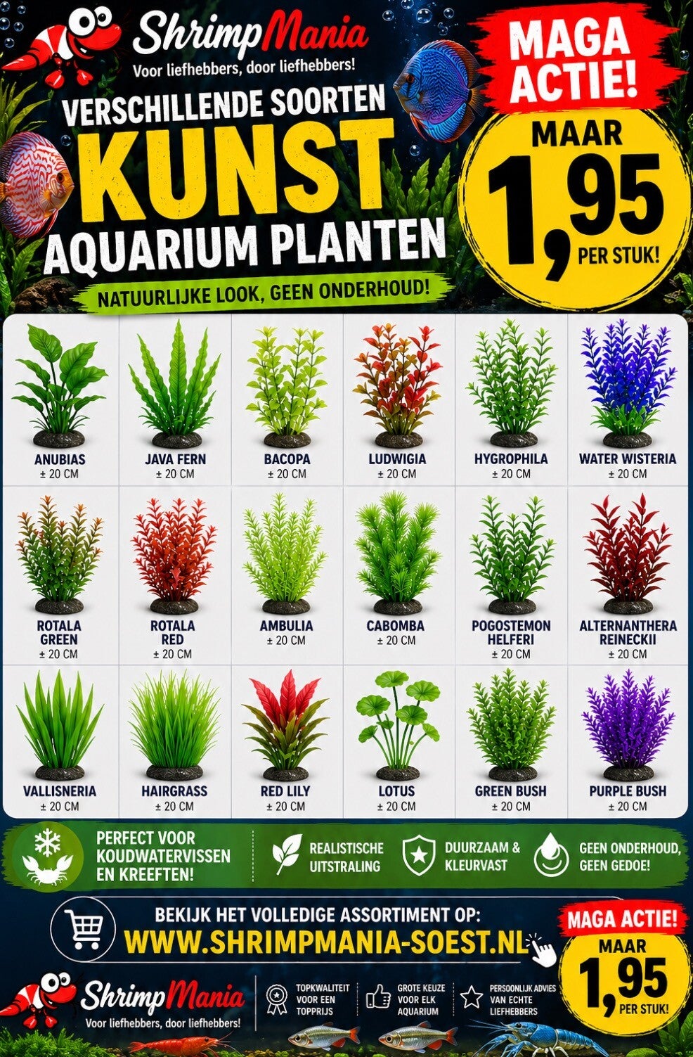 We hebben een grote partij kunstplanten van SuperFish en Silk ingekocht. Perfect voor bijvoorbeeld koudwatervissen- of kreeftenaquaria.