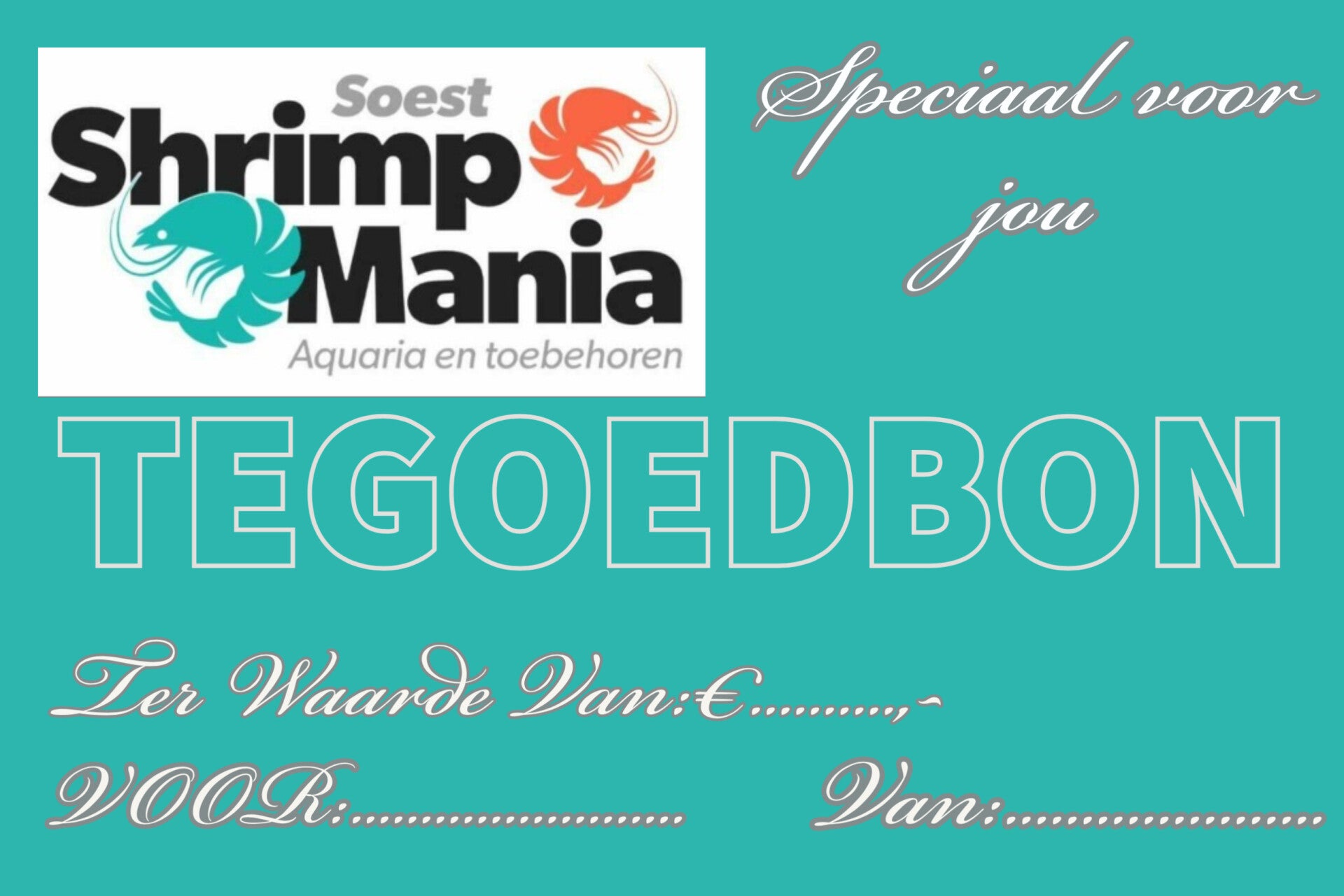 Verras een aquariumliefhebber met deze cadeaubon van €15,- en laat hem of haar zelf kiezen uit ons uitgebreide assortiment! Perfect voor planten, vissen, accessoires en meer.