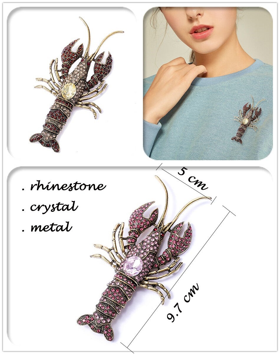 Maak je outfit compleet met deze trendy vintage kreeft broche, verkrijgbaar in vier opvallende kleuren. Gemaakt van zinklegering en voorzien van sprankelende rijnstenen voor een luxueuze uitstraling.