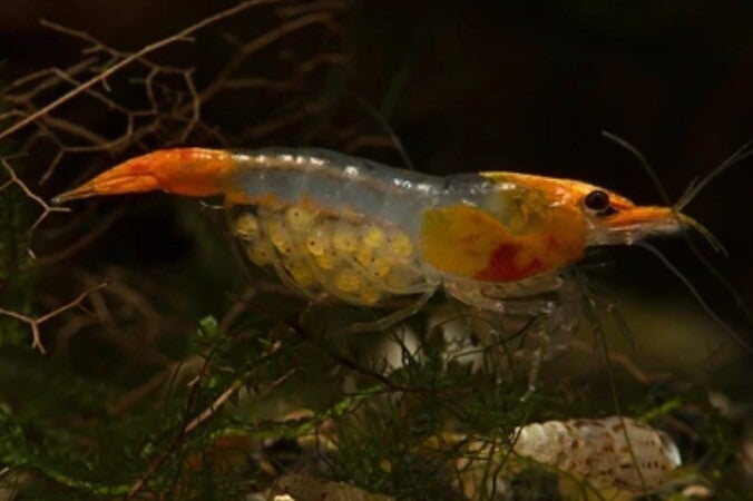 Op zoek naar een opvallende en levendige garnaal met een uniek uiterlijk? De Oranje Rilli Sakura garnaal springt direct in het oog met zijn heldere oranje kleur en doorzichtig middenlijf. Hierdoor zijn de eitjes en zelfs de oogjes prachtig zichtbaar — een fascinerend schouwspel in je aquarium!
