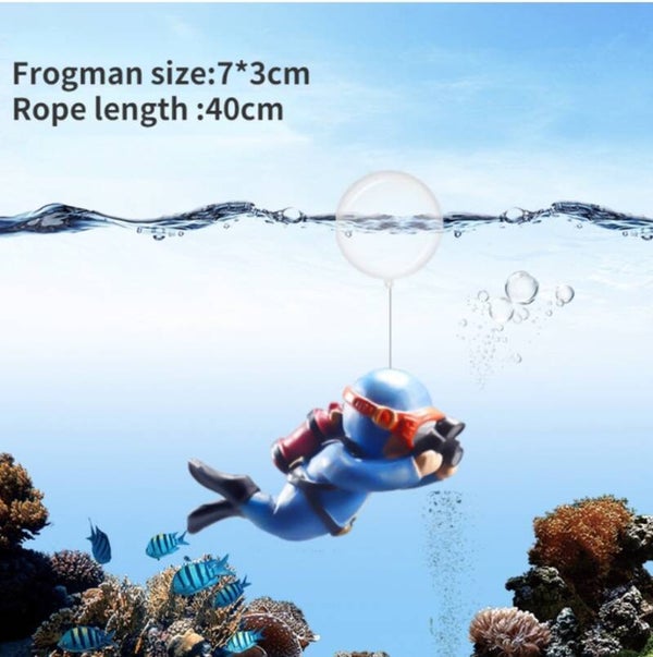 Een speelse blikvanger voor uw aquarium! Deze glazen bol drijft op het wateroppervlak, waardoor het net lijkt alsof het figuurtje erin sierlijk door het aquarium zwemt.